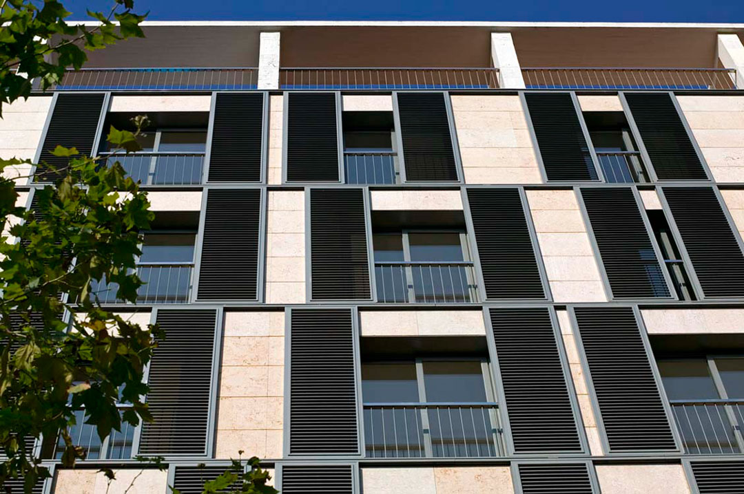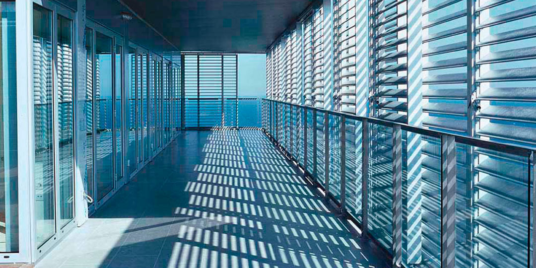 Como respuesta a la creciente demanda de elementos multifuncionales para fachadas, disponemos de una completa gama de persianas o paneles correderos compuestos de marcos de aluminio y con una amplia variedad de lamas de aluminio y madera (tanto fijas como móviles) además de tejidos de protección solar.