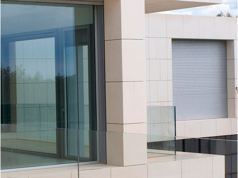 En Aplicación obra para el sistema constructivo tradicional, Gradhermetic suministra la persiana enrollable con separación de lamas AluClassic con sus guías, herrajes necesarios y accionamientos para su instalación en la ejecución de obra.