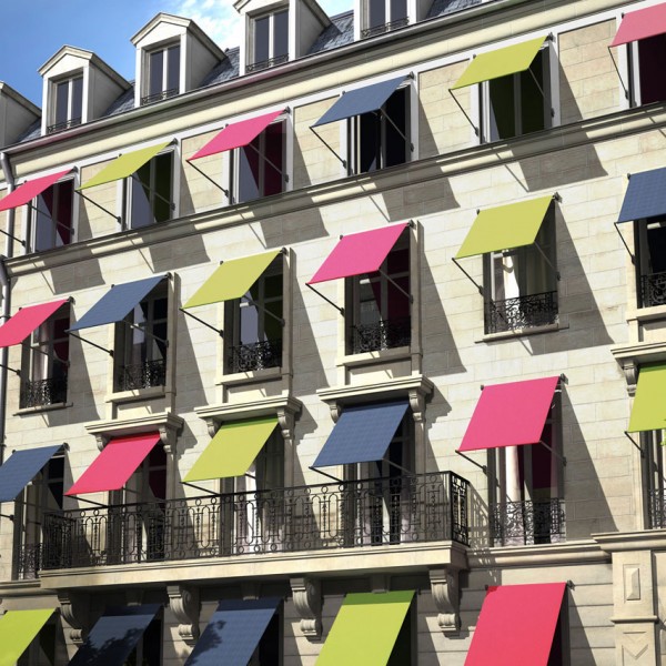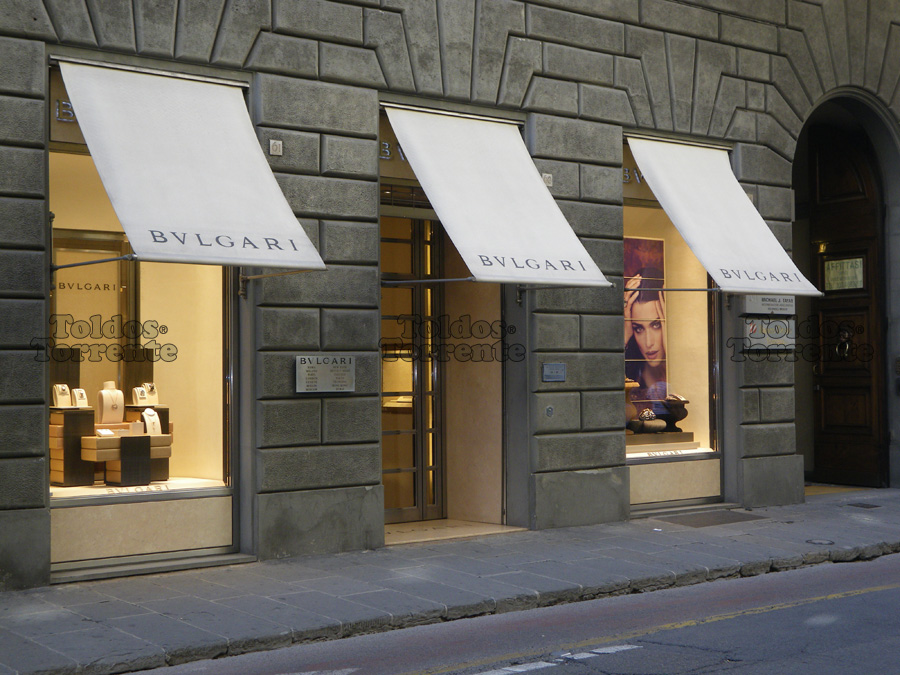 Además, los toldos de punto recto son una solución clásica para las vidrieras de los negocios comerciales atendiendo en este caso a un propósito decorativo.
